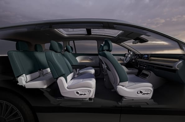 The long-range rear-wheel drive model with 19-inch wheels features a three-row configuration and a 110.3 kWh battery system that delivers a WLTP-estimated range of 620 kilometers.
