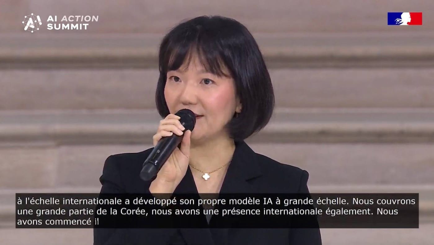 Naver CEO Sooyeon Choi reveals company's AI ecosystem strategy and hyperscale model development at Paris AI Action Summit 2025.