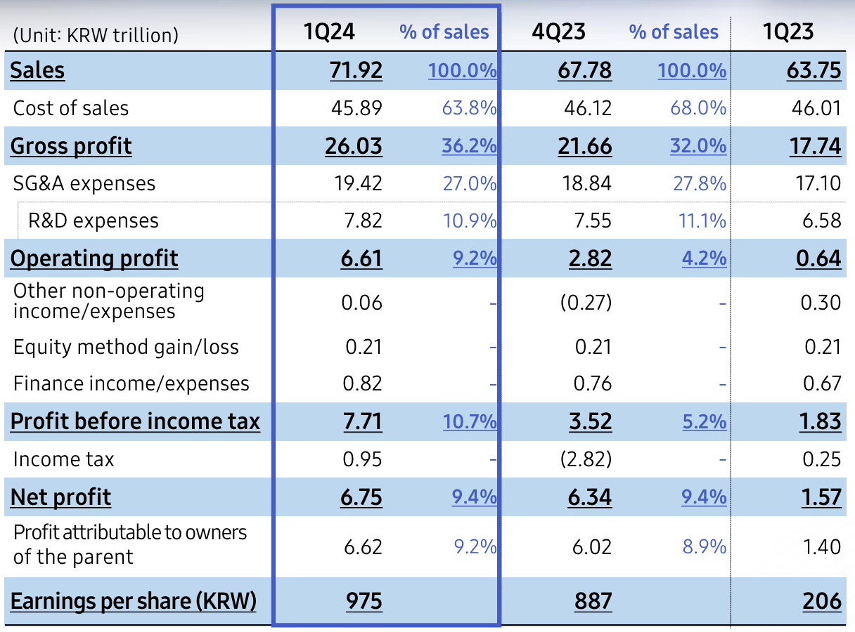 This was driven by strong sales of its flagship Galaxy S24 smartphones and higher memory chip prices.